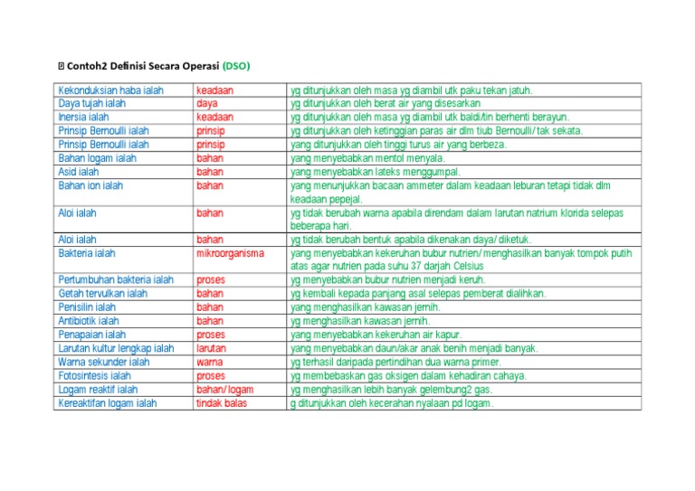 Panduan Definisi Secara Operasi Dso Sains Spm Kelas Live